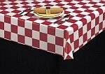 Our Vinyl Tablecloths are much more superior to those you would find in the department stores. They are made of a heavy gauge film laminated to a thick polyester backing material.The 10 gauge 9800 series is 30% thinner than the 13 gauge 6100 series. Available in five colors. Swatches are 8" by 10".